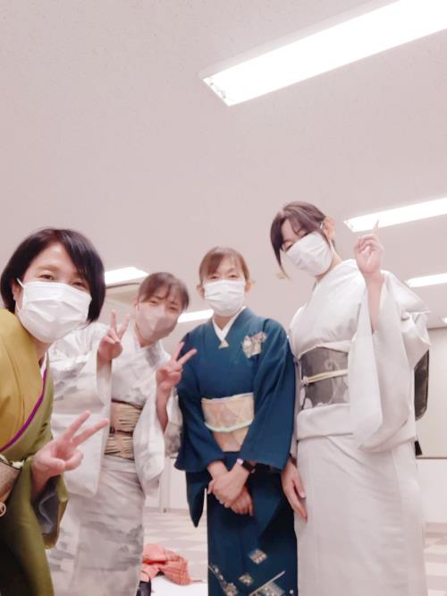 しっかりと学ぶことができる『きものを着てみよう!』コースも広島市東区温品の美和きもの教室ではスタッフ練習会を(^O^)/♪