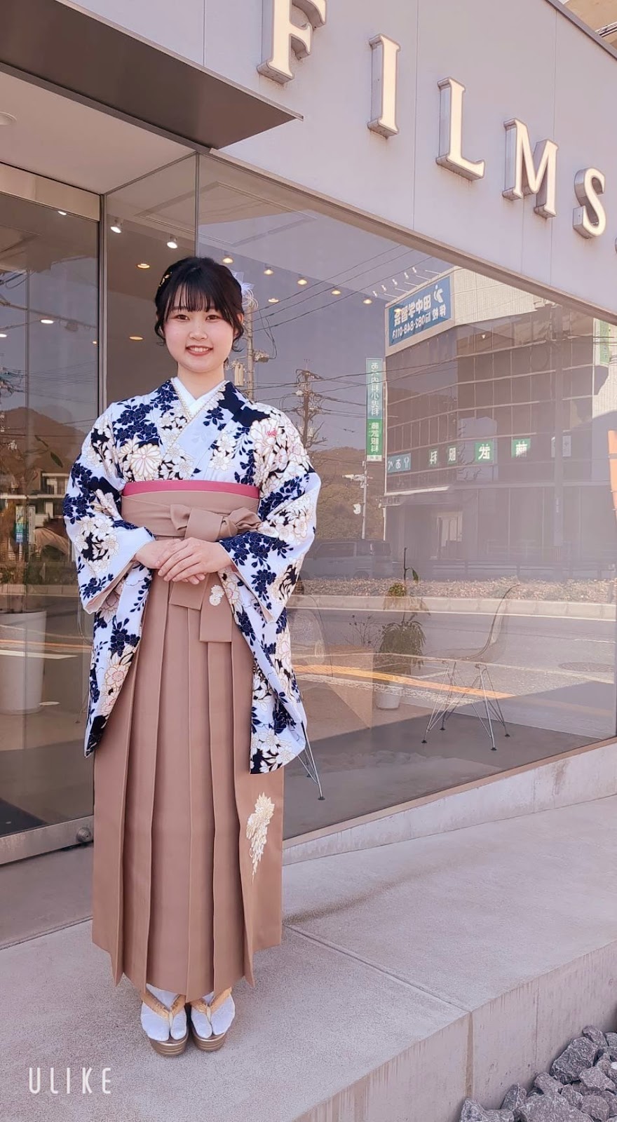 広島市安佐南区のアストラムライン大原駅すぐの美容院「フィルムス(FILMS.)」にて、大学の卒業式にご出席されるお客様の袴着付けをさせていただきました。2025年4月20日、ANAクラウンプラザホテル広島にて、